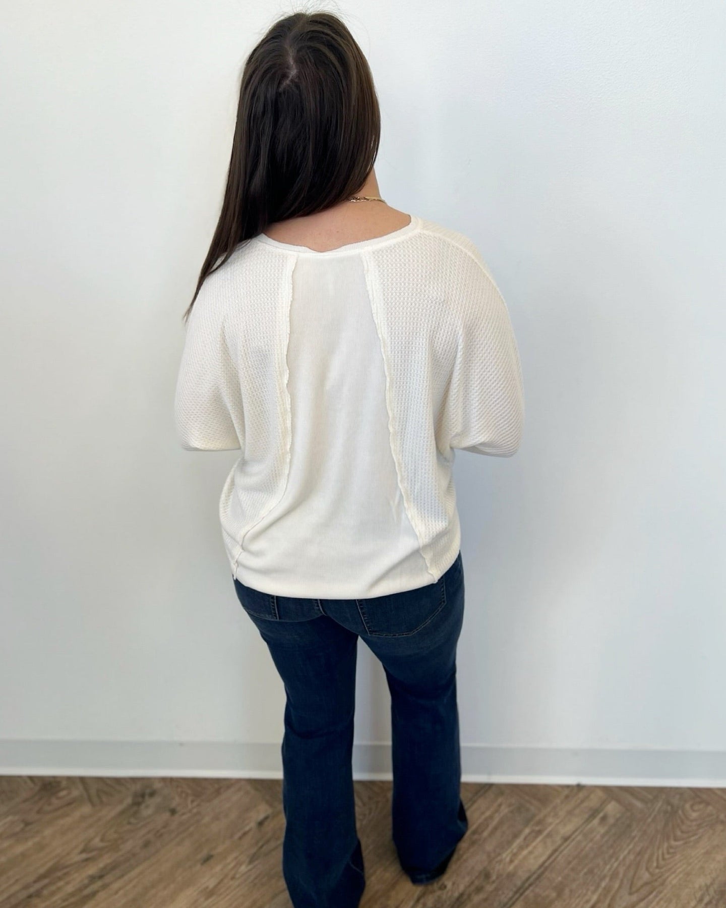 Elevate your everyday wardrobe with the Noel Long Sleeve Waffle Knit Top, a sophisticated piece that combines comfort with contemporary design. Crafted from premium waffle knit fabric, this top offers a luxurious texture that feels as good as it looks. The distinctive raised seaming along the back creates visual interest and a refined silhouette, while the gently rounded hemline provides a flattering, modern fit that works beautifully with both casual and dressed-up styling. Perfect for layering or wearing solo, this versatile top transitions seamlessly from season to season, making it an essential addition to any closet.