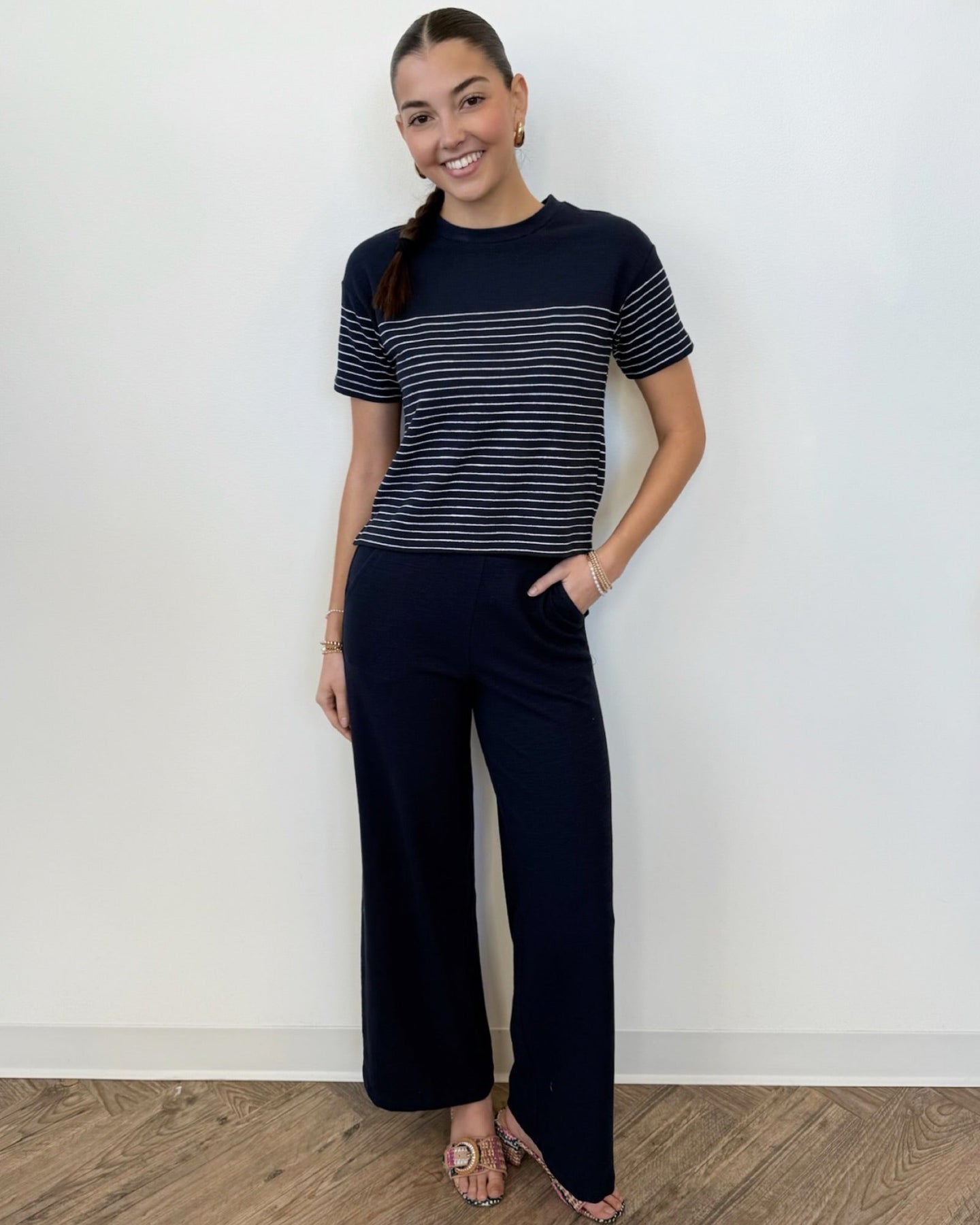 Effortlessly refined, the Z Supply Andre Wide Leg Pant combines contemporary silhouette with everyday comfort. Crafted from a textured knit fabric, this high-rise style drapes beautifully while remaining lightweight and breathable. The elastic waistband ensures a secure, forgiving fit, while functional side seam pockets add practical appeal. Perfect for transitioning from relaxed lounging to quick errands, this versatile pant delivers understated sophistication without compromise.