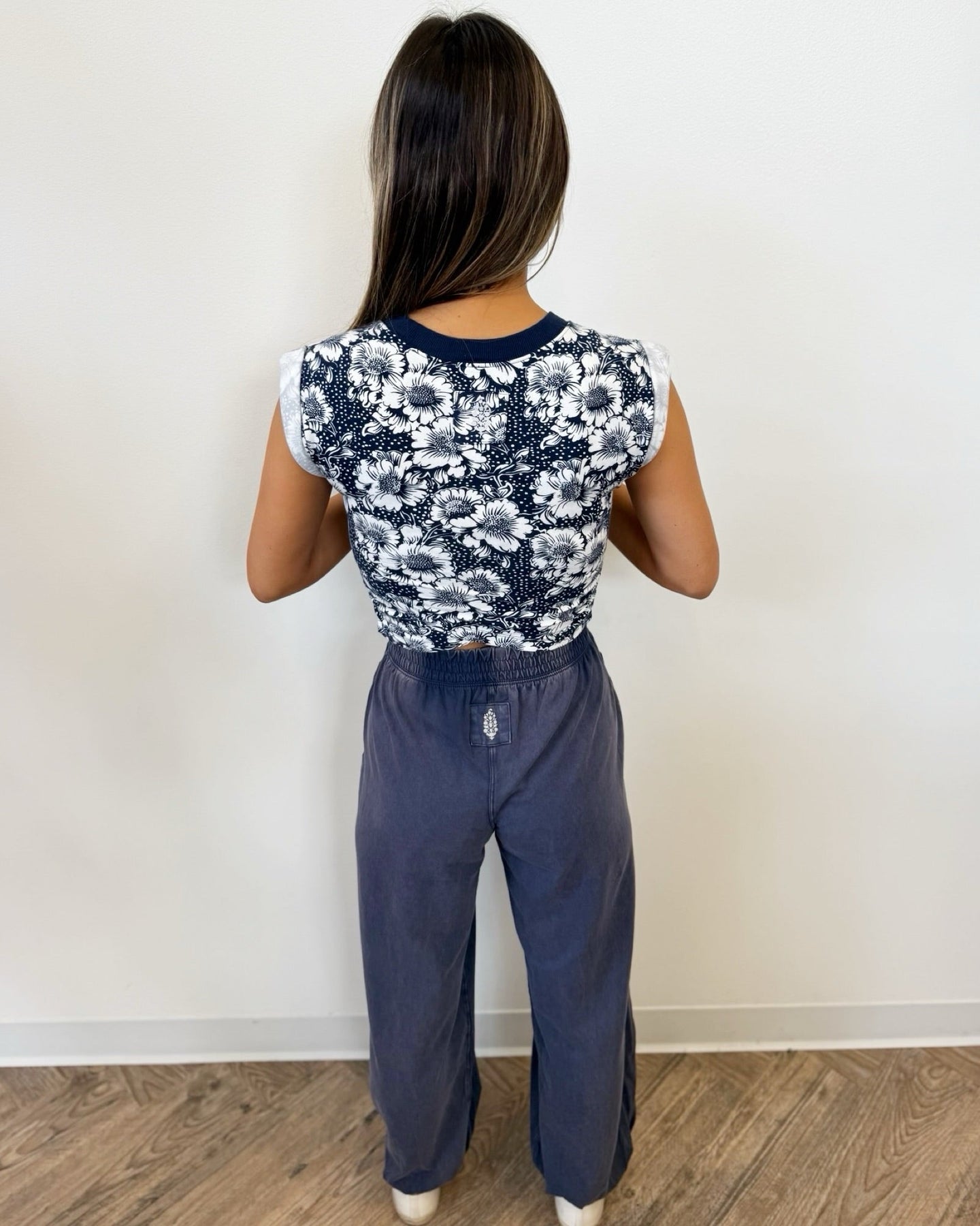 Experience effortless style and comfort with the Sadie Printed Crossover Set. Crafted from soft jersey fabric, this relaxed-fit ensemble features a cropped muscle tee with a flattering crossover detail and seaming accents. The high-rise, ankle-length pants offer a wide-leg silhouette with an elasticated waistband and cuffs for a secure, comfortable fit. Practical side seam pockets and a ribbed collar add thoughtful touches. Perfect for lounging or casual outings, this set blends ease and modern design in one versatile look.