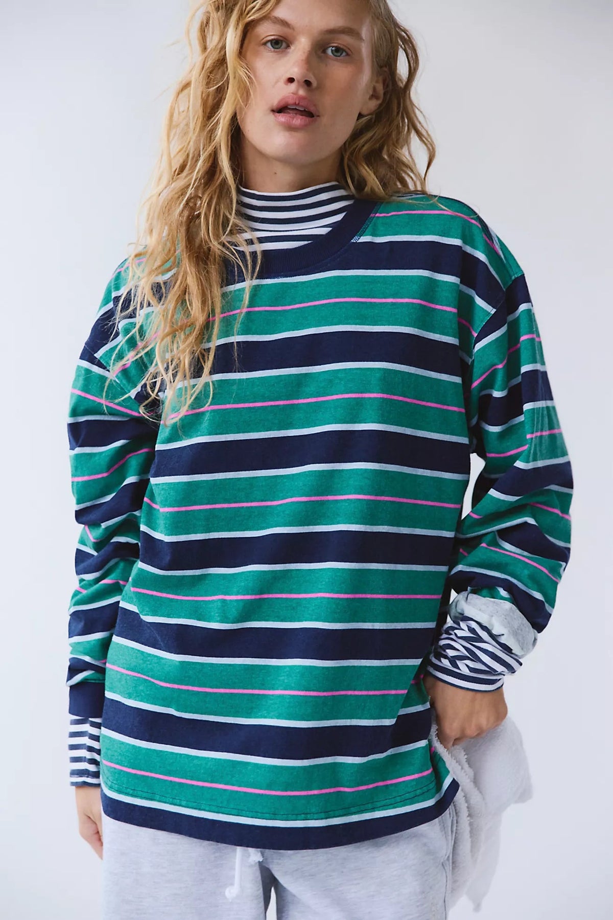 Introducing the Free People Printed Hustle Layer—your new wardrobe essential that effortlessly transitions from season to season. Crafted in eye-catching stripes with a slightly worn-in fabrication, this piece delivers authentic, lived-in style without the effort. The relaxed, slouchy silhouette features a scoop neckline, dropped shoulders, and subtle side slits that add movement and dimension. Whether you layer it over a fitted tee or wear it solo, its versatile design pairs with virtually everything in your closet. Perfect for those who crave comfort without compromising on style, this long sleeve shirt proves that true elegance lies in simplicity and ease.