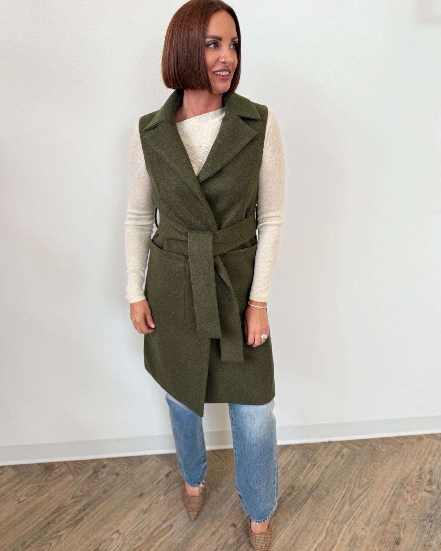 The Marcel Vest is crafted from a refined double-face fabric featuring a notched collar and a wrap-front silhouette secured with a matching wrap belt for a customizable fit. Designed with front patch pockets and side slits, it offers both practicality and ease of movement. Its relaxed fit ensures comfortable layering, making it a versatile addition to any wardrobe seeking a blend of structure and casual sophistication.