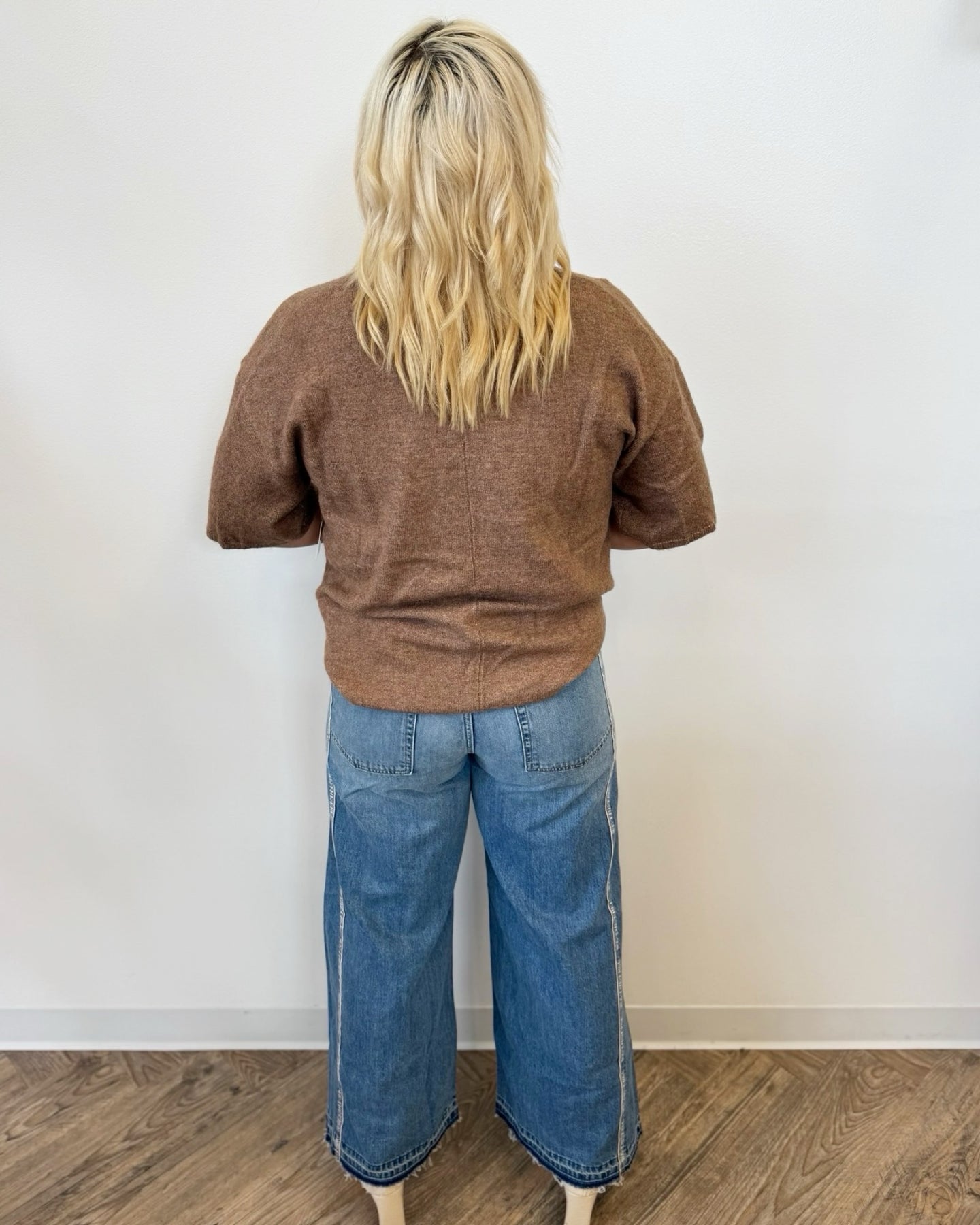 The Olympia Sweater Tee combines cozy comfort with everyday versatility in a flattering oversized fit. Designed with a classic crew neckline and ribbed trim, it offers subtle structure while the short drop-shoulder sleeves enhance its relaxed silhouette. Perfect for effortless layering or wearing alone, this sweater tee is a reliable foundation for casual, laidback looks.