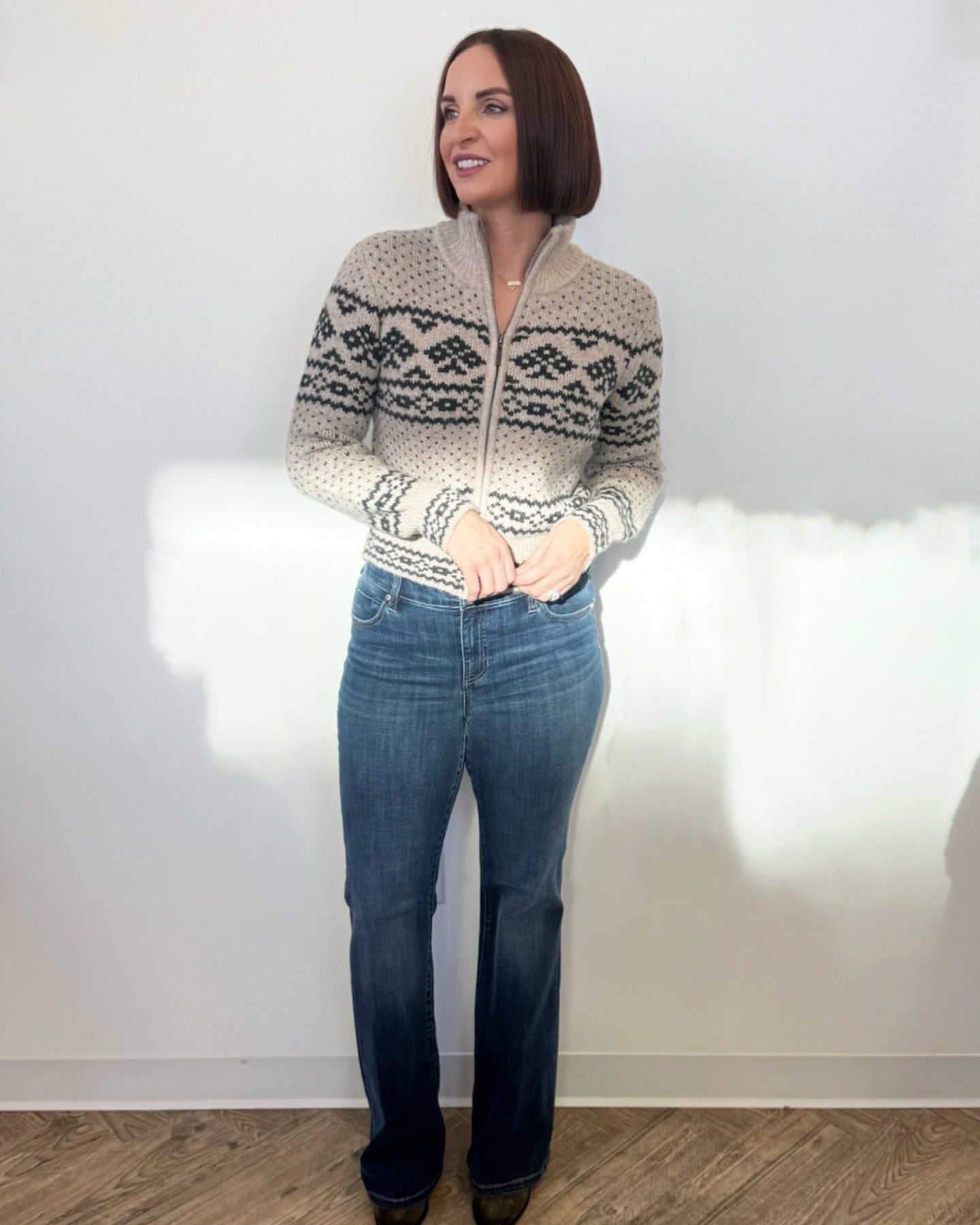 Embrace festive elegance with our Jolly Zip Cardigan, featuring timeless Fair Isle patterns that capture the warmth of holiday tradition. This cozy layer combines classic Nordic-inspired knit design with modern convenience—simply zip up for effortless style that transitions seamlessly from casual gatherings to intimate celebrations. Perfect for layering over your favorite pieces, this cardigan delivers both comfort and seasonal charm. Whether you're decorating, caroling, or cozying up by the fire, this versatile piece becomes your go-to companion throughout the winter season.