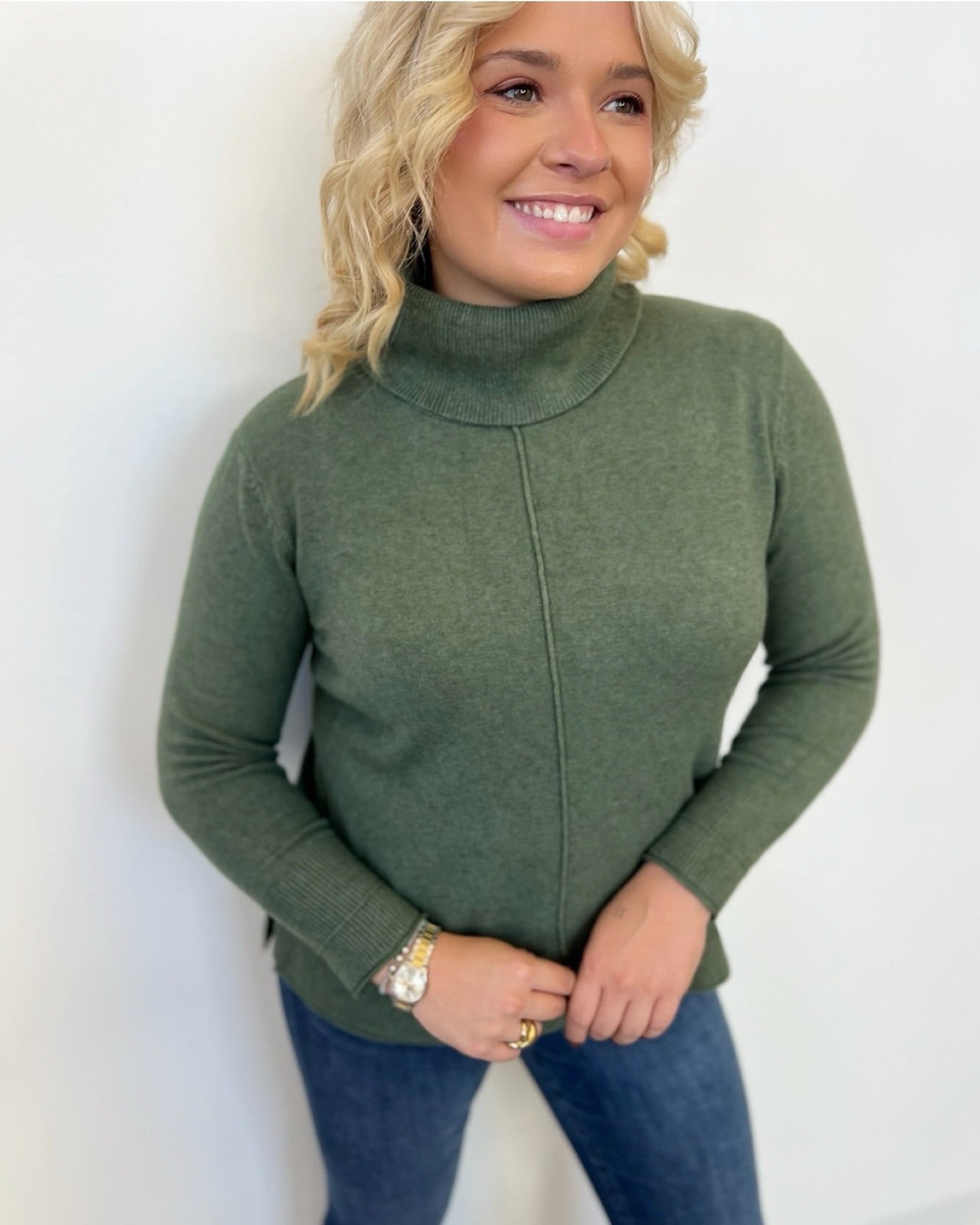 Experience cozy sophistication with the Stockton Oversized Roll Neck Knit. Designed with long sleeves for extra coverage and comfort, its unique center front seam adds a stylish edge. Contrasting seams on the hem and cuffs highlight attention to detail, while the dropped shoulders create a relaxed fit that gracefully drapes. Perfect for effortless layering, this knit combines comfort and distinctive design to elevate your casual wardrobe.